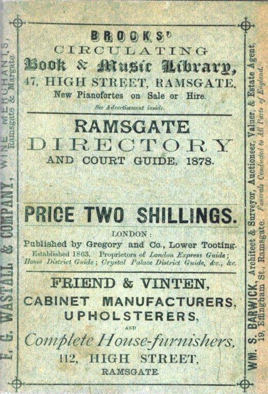 1. T. Gregory Ramsgate Directory & Court Guide 1878 (Facsimile.) - (Edition unknown.) - Original is unrecorded.